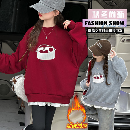 1*5收藏“MK2568樱桃绣花加绒卫衣”